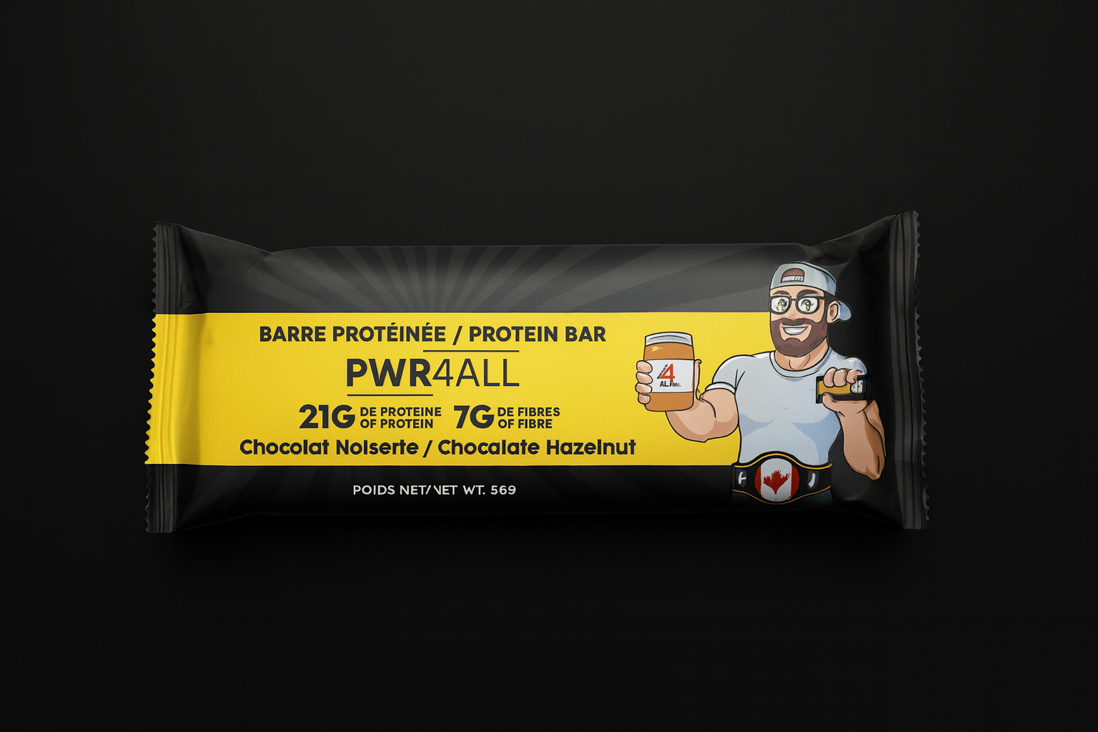 A mix of PWR4ALL Bars (4 of each flavour) chocolate, peanut butter, chocolate almond, and chocolate hazelnut, or you can mix and match two flavours of your liking.